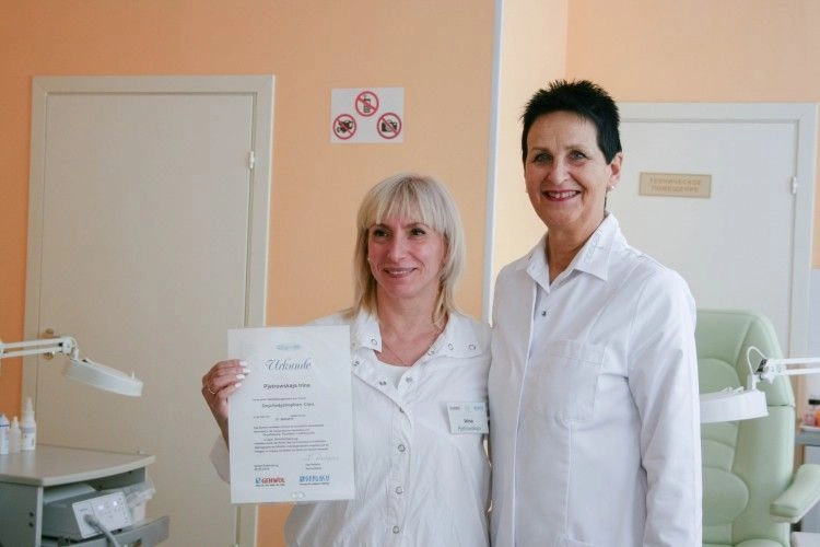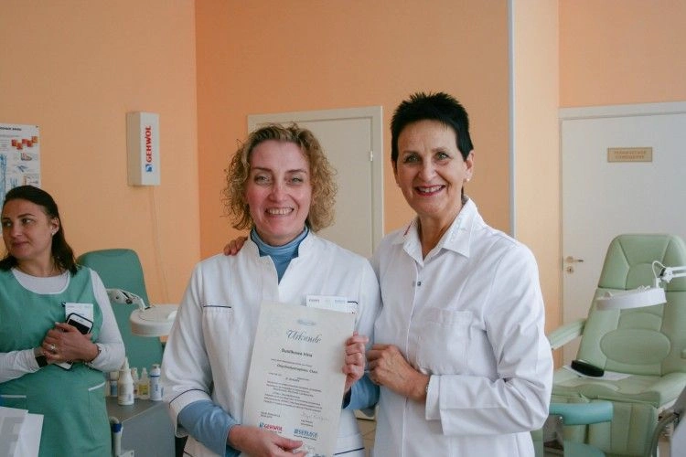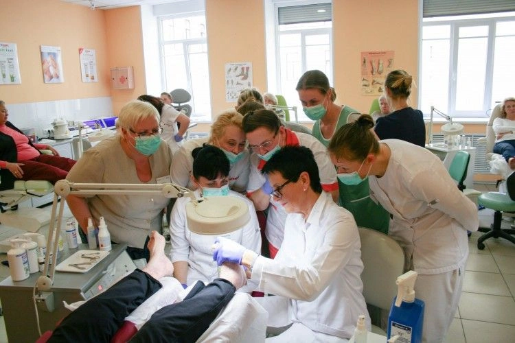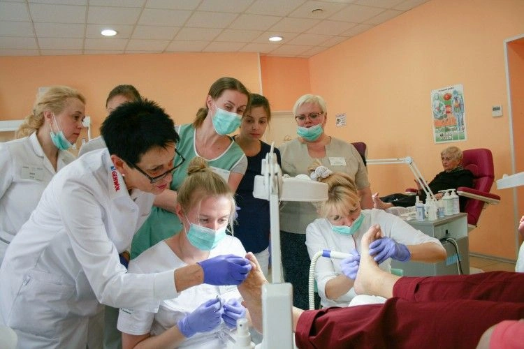 Каждый день, помимо теоретической части обучения, проходила практическая отработка навыков на приглашённых моделях. Под руководством ведущего немецкого подолога, слушатели курса отрабатывали методики, рассмотренные на теоретической части.